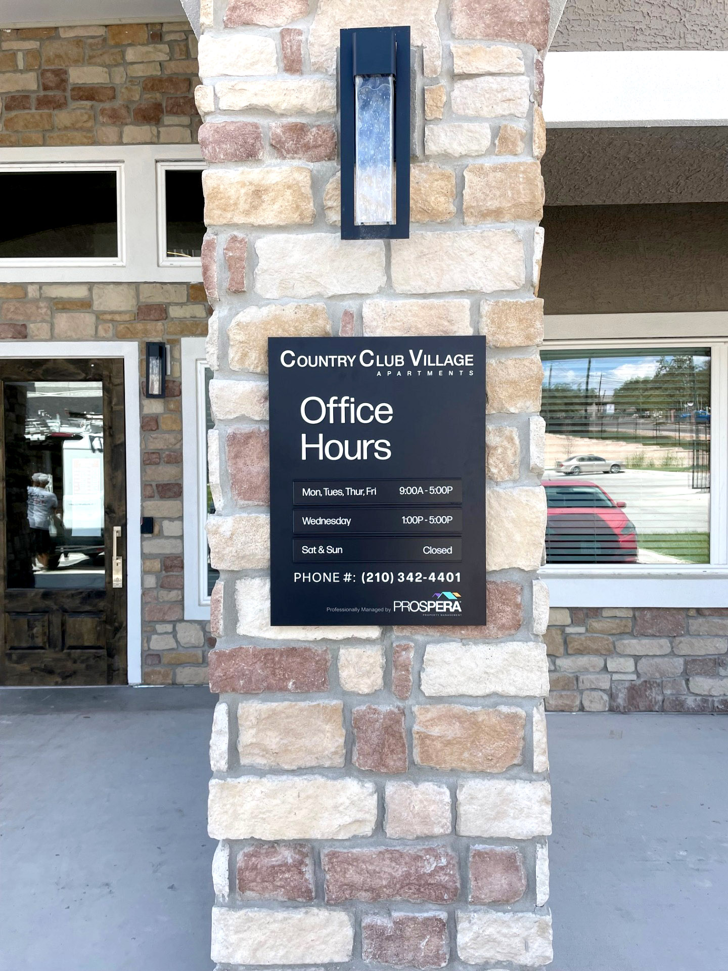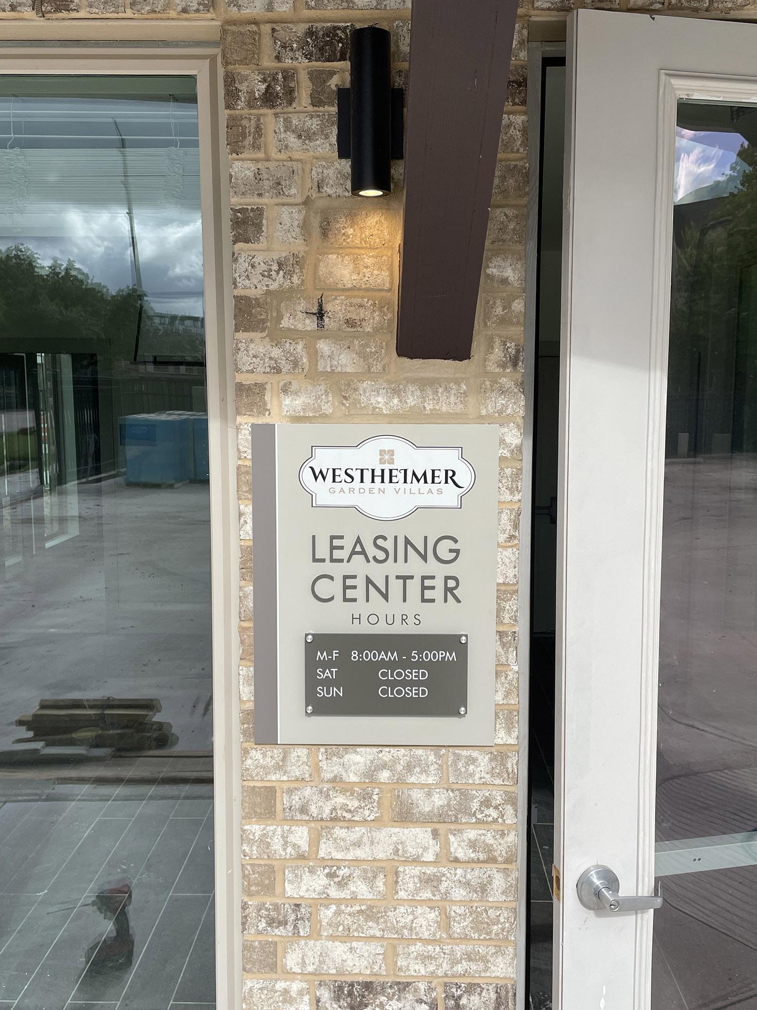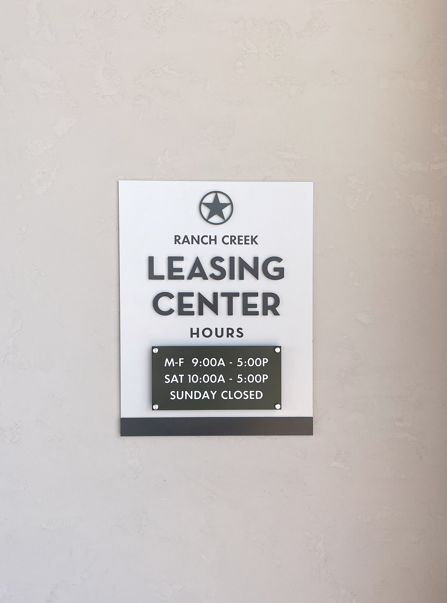 Leasing & hours signs